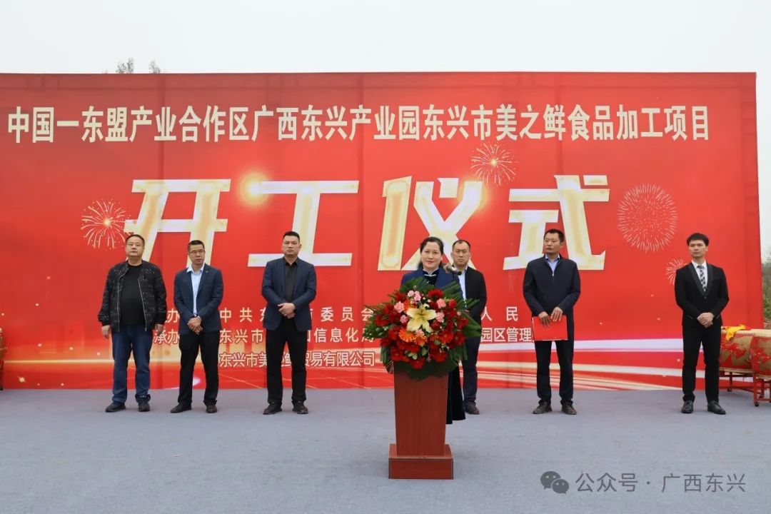3月15日上午,中国—东盟产业合作区广西东兴产业园区东兴市美之鲜食品加工项目举行开工仪式。东兴市政协副主席陈汉芸出席活动并宣布项目开工。