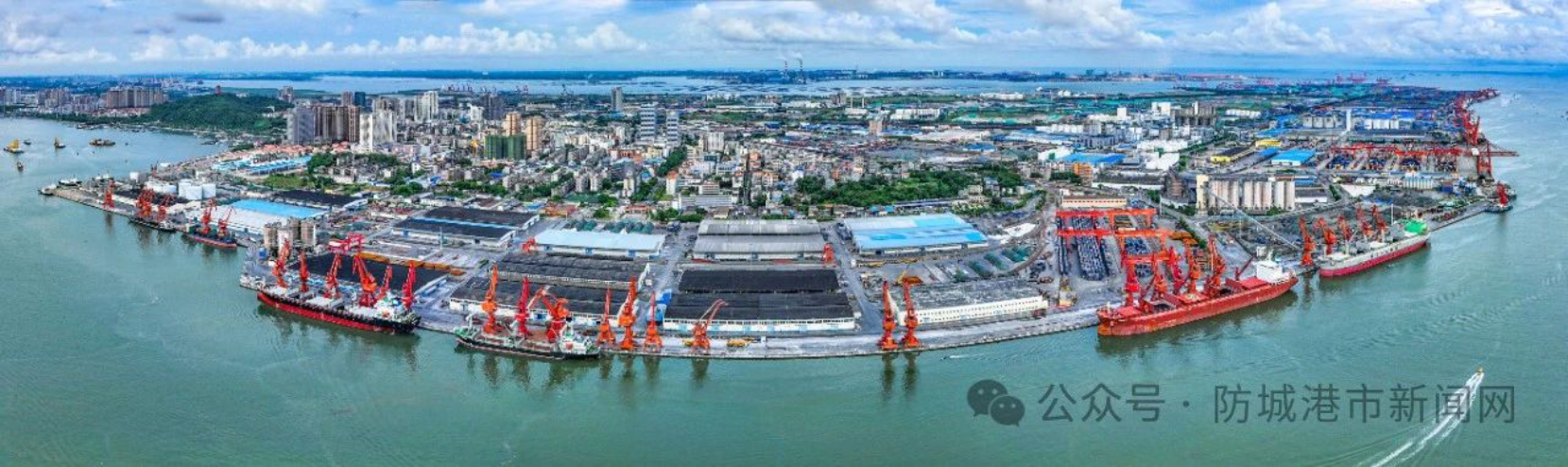 拥有西部第一个亿吨大港—防城港,生产性泊位148个、岸线14.65公里,全港码头岸线21.51公里,全港综合通过能力近2亿吨,与全球100多个国家、250多个港口通商通航,是全国最大的硫磺中转、磷酸出口港以及铁矿石、煤炭、粮食、化肥等中转基地,也是中国南方能源和原材料的转运中心。