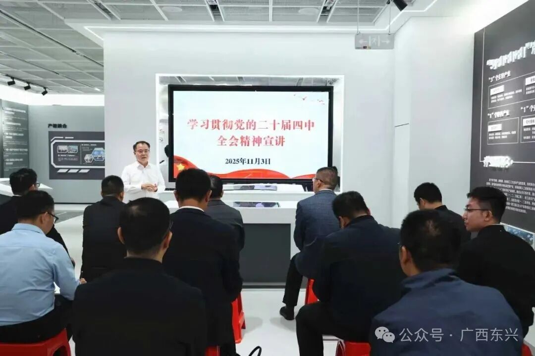 11月3日,东兴试验区党工委副书记、管委会常务副主任,东兴市委书记彭绍关深入广西东兴产业园区宣讲党的二十届四中全会精神。彭绍关强调,要深入学习宣传贯彻党的二十届四中全会精神,切实把思想和行动统一到以习近平同志为核心的党中央决策部署上来,抢抓发展机遇,聚力招大引强,优化为企服务,全力以赴抓好“三个突破年”“三跑”行动,确保全年各项目标任务圆满收官,为东兴市“十五五”良好开局奠定坚实基础。