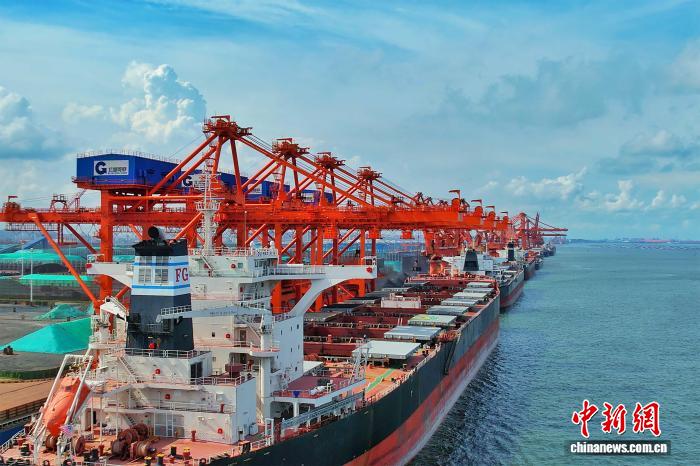黄志仁介绍,作为支撑临港工业的“原料动脉”,防城港码头主要运输货物包括铁矿、煤炭、粮食、硫磺、化肥、铝土矿等大宗干散货,其中外贸进口货物占比达74%。2025年上半年,防城港港口货物吞吐量已突破1亿吨,创历史同期新高。