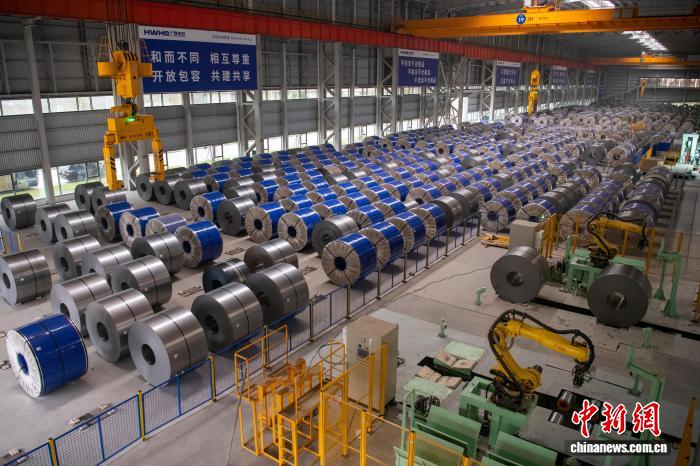 走进广西宏旺生产车间,数条生产线有序运转,自动化设备精准吊运着钢卷,11万平方米的厂区少见工作人员身影,整个车间从原料输入、加工到产品出口,全程在控制中心操作。