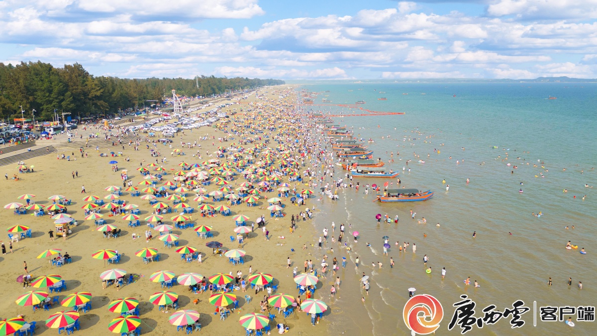 东兴市金滩景区游人如织。记者 苑长军 摄