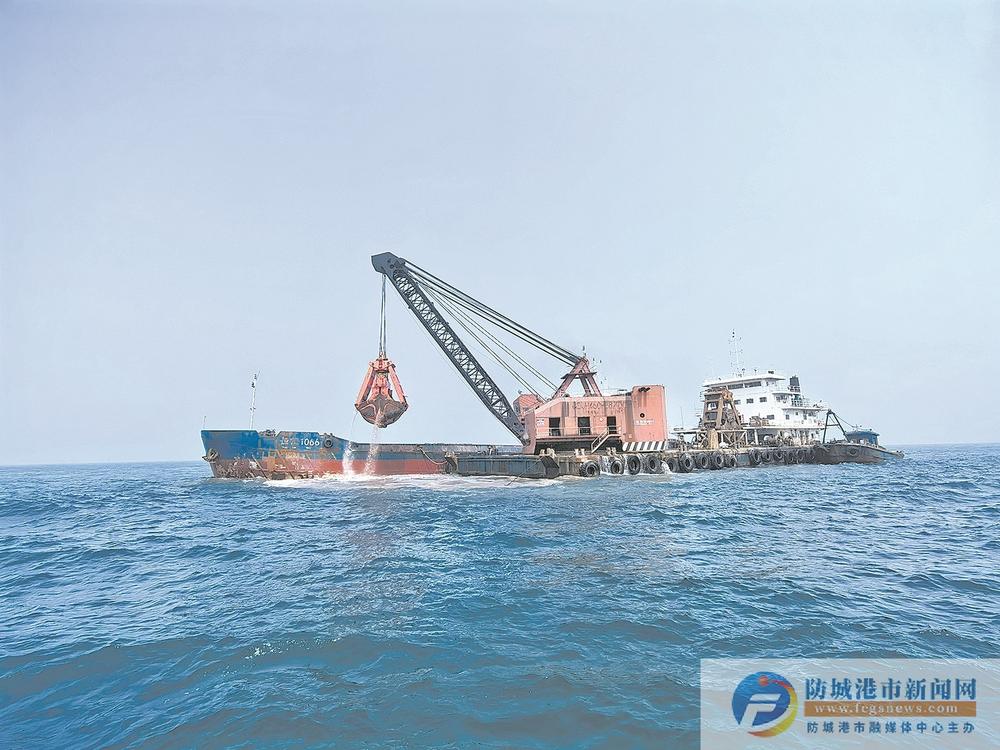 中交广州航道局有限公司防城港港30万吨级进港航道工程(一期)施工I标段项目经理部副经理闫岩介绍:“防城港港30万吨级航道项目全长23公里,I标段长度3.05公里,施工方量697万方。截至目前,现场配备抓斗船4艘、泥驳5艘。完成方量135万方,完成比例约15%,完成产值超过15%。”