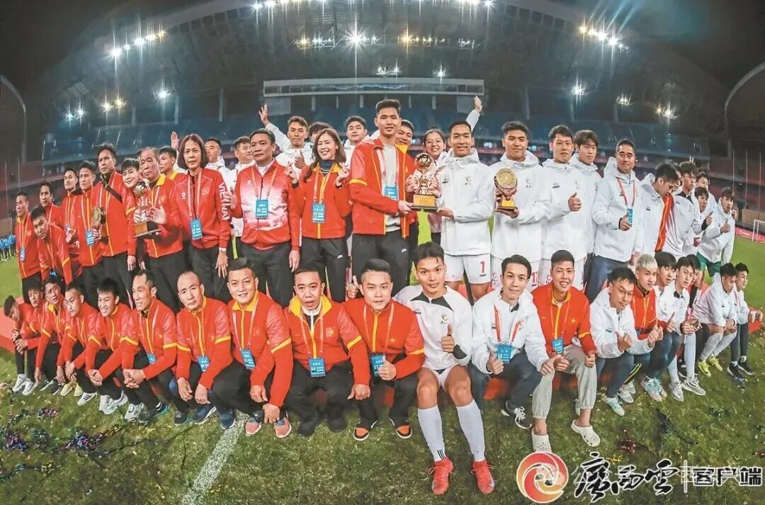 2月11日,随着中国广西代表队4∶1战胜越南广宁省队,首届中国广西与越南广宁、谅山、高平、宣光、海防五省市新春足球赛在广西体育中心圆满落幕。图为中越队员赛后欢乐合影。广西云-广西日报记者 周军 摄(资料图)