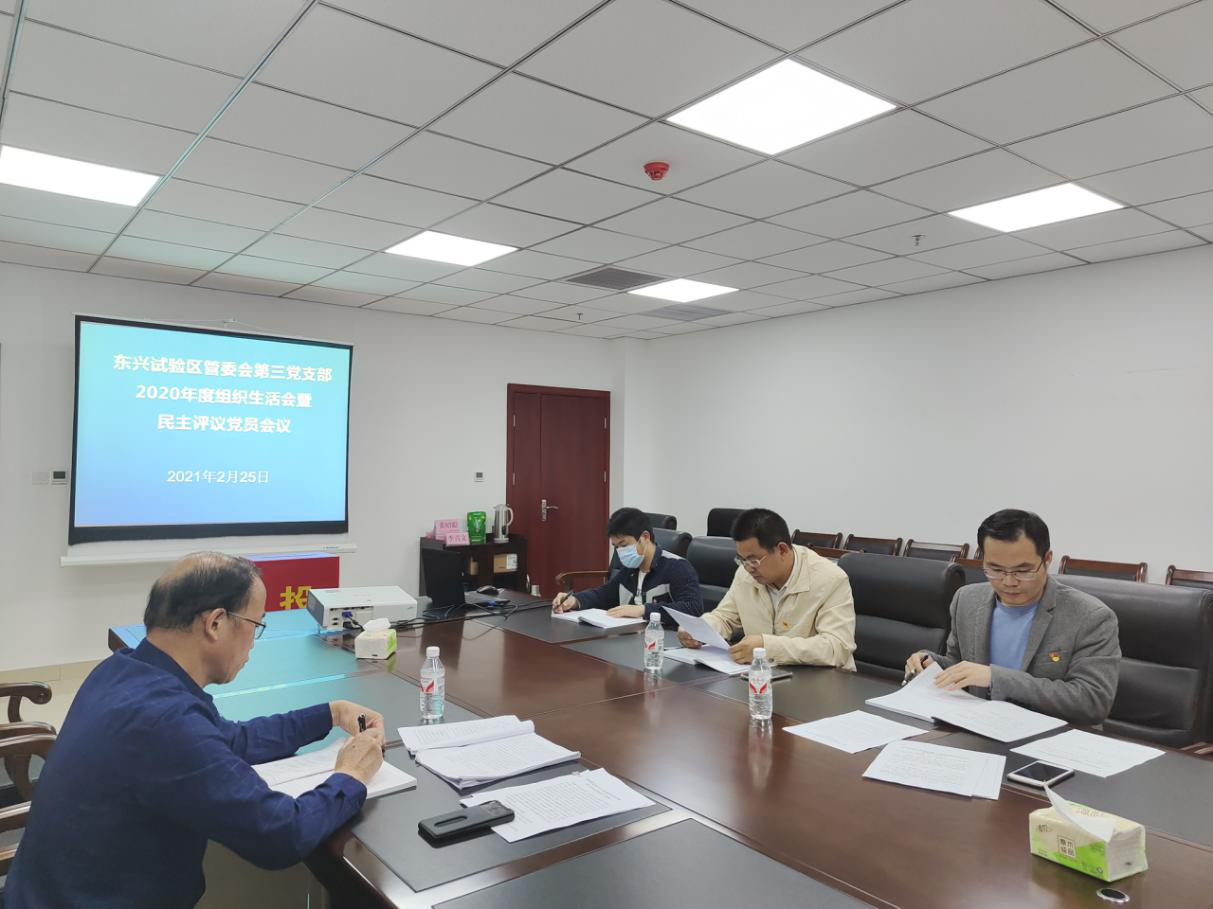 图三:东兴试验区管委会第三支部开展2020年度组织生活会暨民主评议党员会。